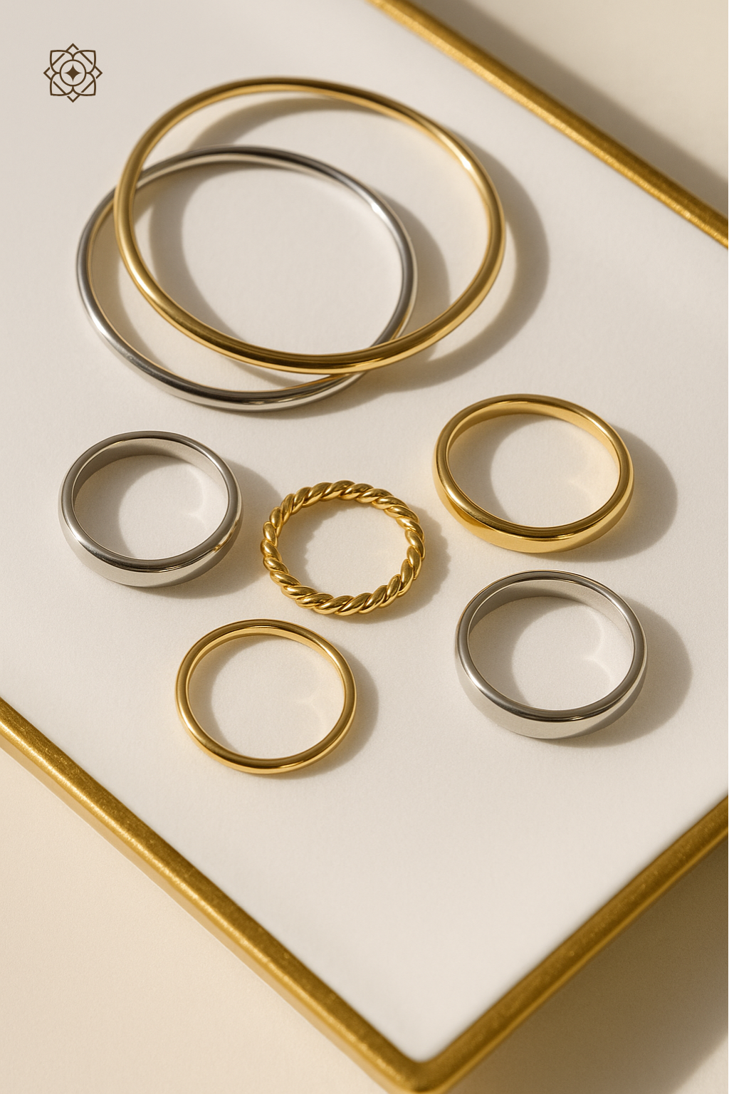 Our rings and bracelets combine gold and silver tones in perfect harmony, creating pieces that redefine minimal luxury.
