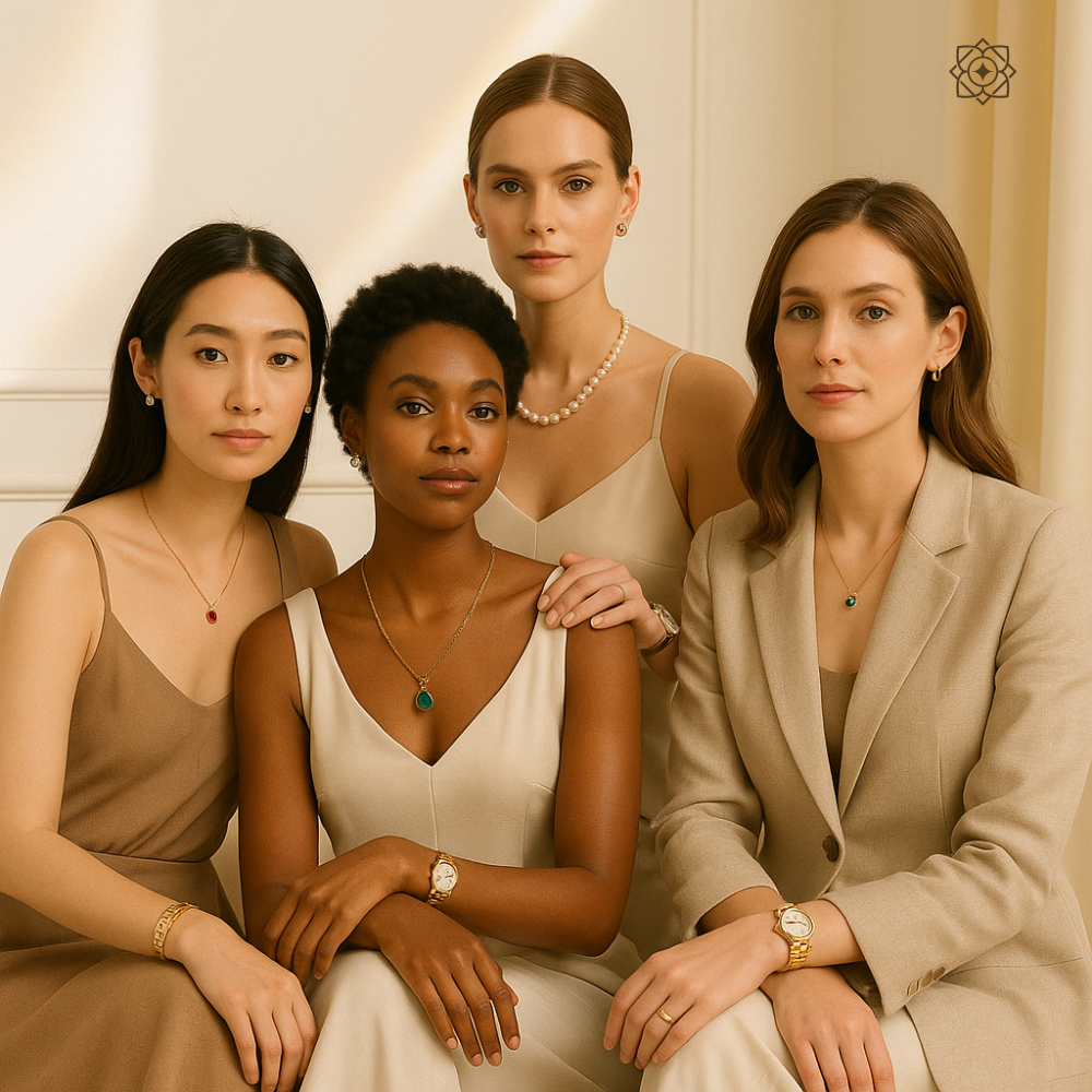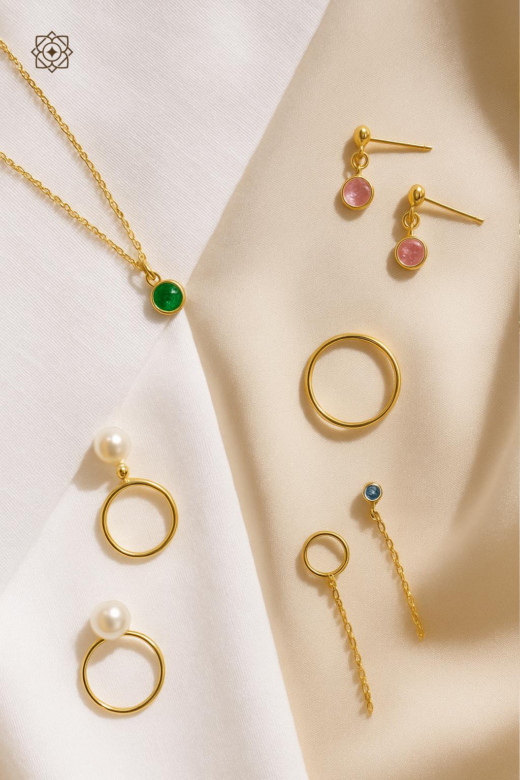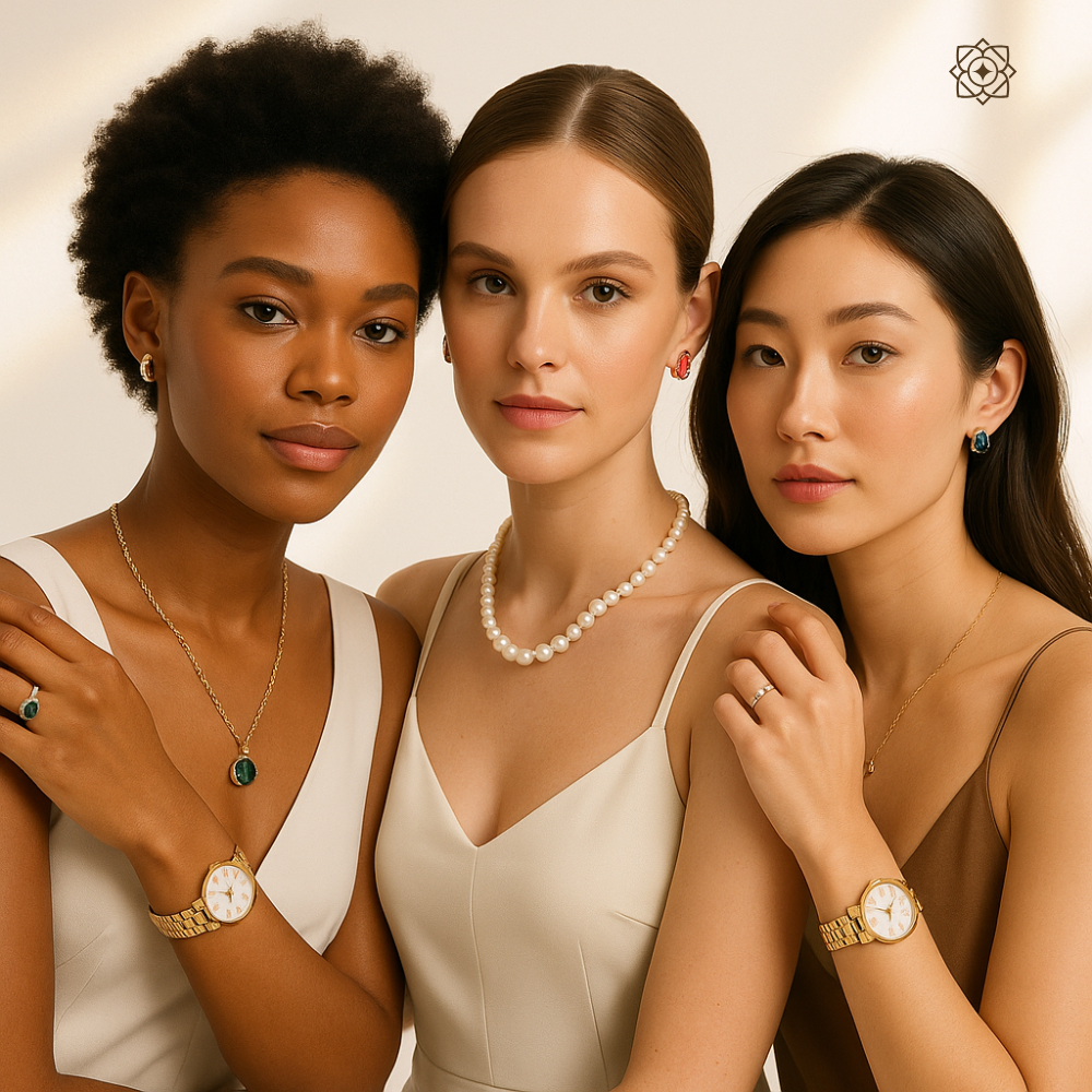 Discover fine jewelry designed to enhance your natural glow — with gemstones, pearls, and golden tones that celebrate every unique moment.