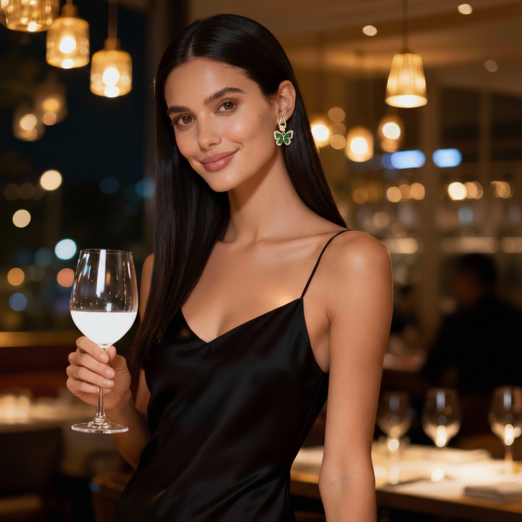 Elegant and luminous, the Butterfly Verde Vintage Drops pair the timeless allure of emerald green with a delicate butterfly silhouette. The 925 sterling silver post (“silver needle”) ensures comfort for sensitive ears, while the faceted cubic zirconia crystals deliver a glass-like, sophisticated sparkle that catches the light with every movement. A touch of modern femininity that elevates any look—from casual to black-tie.